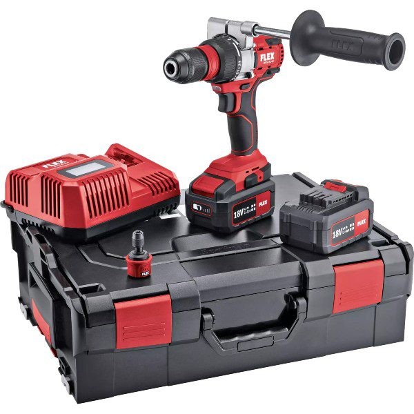 Kompakt, kraftfuld skruemaskine med ekstremt kort hovedlængde Kulfri motor med større effektivitet og længere levetid Elektronisk styringssystem (EMS) beskytter maskinen, forlænger levetiden og øger effektiviteten Borepatron kan fjernes uden værktøj Ergonomisk designet, skridsikkert, blødt greb LED batterikapacitet display Egnet til alle FLEX 18,0 V batteripakker Batterispænding: 18 V Batterikapacitet: 2,5/5,0/8,0 Ah Maks. moment blød/hård: 35/65 Nm Moment indstillinger: 23 + 1 Omdrejningstal: 0-500/0-1.800 O/min. Borepatron: 1,5-13 mm Maks. borediameter i stål/træ: 13-52 mm Dimensioner (BxLxH): 149 x 69 x 208 mm Vægt 1,140 kg Leveringsindhold: 1× Bælteclips DD/PD/ID 18.0 1× Bitsbeholder DD/PD/ID 18.0 2× Li-Ion batteri AP 18,0/ 2,5 ah 1× Oplader CA 10.8 230/CEE