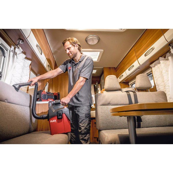 Meget kompakt, handy og let støvsuger med bærestrop til mobil brug. Det kompakte design betyder, at den passer i alle køretøjer Den højtydende turbine sikrer både en høj sugekapacitet og et højt vakuum. Resultatet er et fremragende udvindingsresultat Ved at aktivere manuel filterrensning fjernes støv aflejret i filterelementet ved en målrettet luftblæsning Med en 32 mm diameter kan støvsugerslangen med en længde på 0,5 m forlænges til 2,5 m. Meget praktisk til nem transport af støvsugeren Kraftig støvsuger til professionel brug ved slutrengøring, bilrengøring osv. Optimal til rengøringsarbejde i kontorer, lagerrum, værksteder og køretøjer Batterispænding: 18,0 V Batterikapacitet: 2,5 / 5, 0 Ah Støvsuger flowhastighed: 1400 m³ /t Maks. vakuum: 12000 Pa Filteroverfladeareal: 3000 cm² Tankvolumen: 6 L Styring af sugekraft: Ingen Slange længde: 2,5 m Antal sugemotorer: 1 stk. Dimensioner (BxLxH): 240 x 200 x 400 mm Vægt 3,300 kg Leveringsindhold: 1× Støvsugerslange SH-C 32x0,5-2,5m NL 1× Fladt foldet filter FE VC 6 L 1× Vlies støvsugerpose FS-F VC 6 VE5 1× Mundstykke K-C 32 HT 1× Mundstykke CN 36x270 1× Rundt børstemundstykke RN 27/36x120 1× Møbelmundstykke PN 27/36x115 1× Skulderrem SST VC 6 ! Leveres i kartonæske UDEN lader og batteri