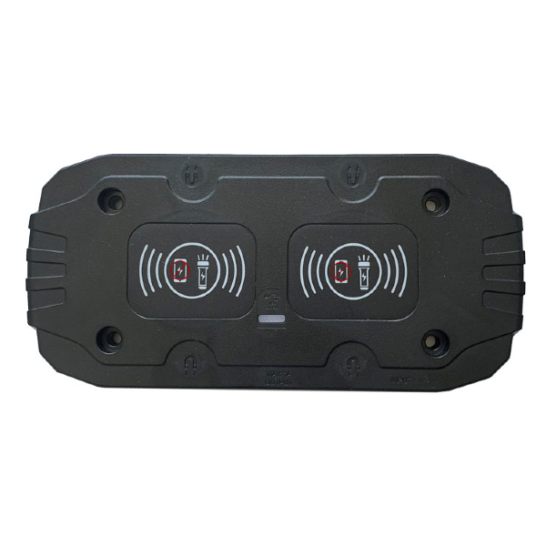 Laderplade for 2 Wireless lamper. Ladeplader er med kraftig magnet for montering på lift, i bil, på værkstedsvæge af metal. Der er også mulighed for montering med skruer på ikke magnetiske bagplader. Passer for lamper vare nr. 6542, 6546, USB stik og kabel vare nr. 6549. Vægt 0,243 kg