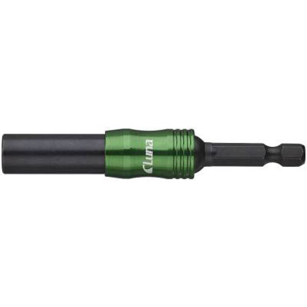 Luna. Vinklet bitsholder med lynudløsning. Spidsen kan vinkles 25 grader for at lette adgangen til sværttilgængelige skruer. Kan anvendes både vinkelret og med 25 graders vinkel Kan anvendes både vinkelret og med 25 graders vinkel ETIM- klassificeringskode: EC002118 Fatning størrelse: 1/4” Til bits sekskantet fatning: 1/4” Længde: 90 mm