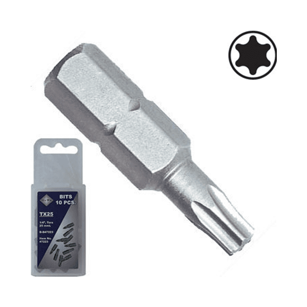 KATEGORIER Håndværktøj & DIV>Bits/sæt & holder>Torx 1/4" Torx 30 x 25 mm lang ks. á 10 stk