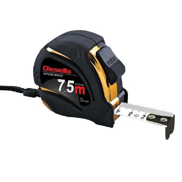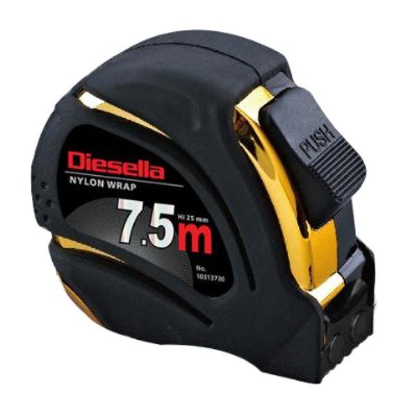 Prof. målebånd med autolås og nylonbelagt bånd som gør målebåndet ekstra slidstærkt. Hvidt målebånd med sort mm-skala og røde tal for hver 10 cm. Leveres inkl. 1 stk. kraftig ABS plast ophæng. Bredde: 25mm Båndfarve: Hvid Forpakning: 1 stk / 12 stk / 144 stk Klasse: 2 Længde 7,5m Produkt type: Båndmål Brutto vægt 0,400 kg Netto vægt 0,380 kg