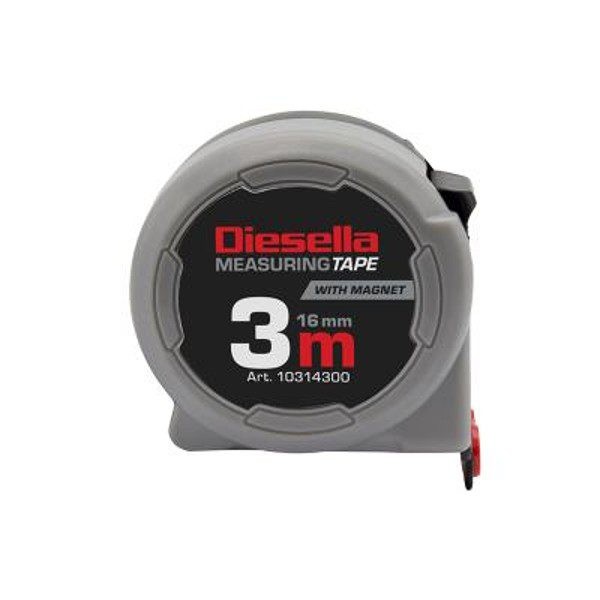 Meget kompakt og robust prof. båndmål med autolås. Med gult båndmål, sort mm-skala, røde tal for hver 10 cm og magnet. Tykkelse 0,125 mm. Leveres inkl. kraftig metal bælteclip og bærestrop. Bredde: 16mm Kompakt hus på 51x50x34,5 mm Metal bælteclips Bærestrop Bånd farve: Gul Forpakning: 1 Gradering: MM Gummibelagt hus: Nej Klasse: MID 1 Længde: 3000mm Lock: Auto-Lock Mage: Ja Vægt 0,090 kg
