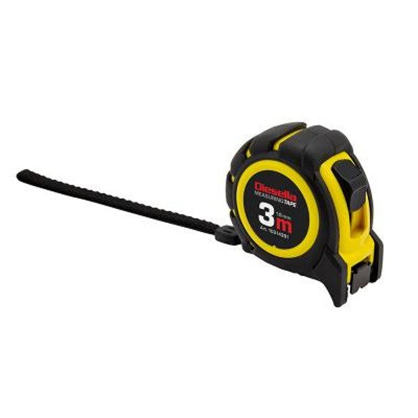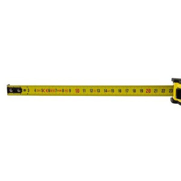 Robust professionelt båndmål med Power-lock. Med mat gult båndmål, sort mm-skala og røde tal for hver 10 cm. Huset er gummibelagt for ektra beskyttelse. Tykkelse 0,14 mm. Leveres inkl. kraftig metal bælteclip og bærestrop. Længde: 5000mm Bredde: 19mm Gummibelagt og kompakt hus på 82x80x45 mm Power-Lock Metal bælteclips Bærestrop Bånd farve: Gul Forpakning: 1 Gradering: MM Klasse: MID 2 Lock: Power-Lock Magnet: Nej Vægt 0,240 kg