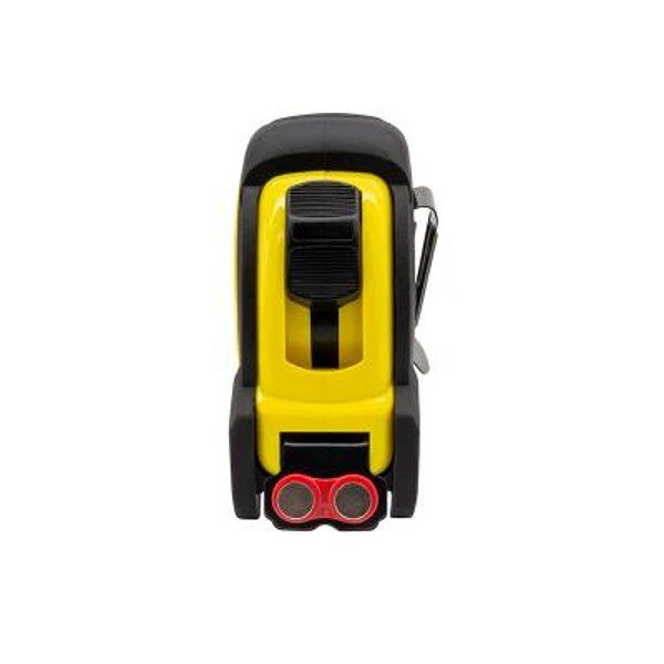 Robust professionelt båndmål med Power-lock. Med mat gult båndmål, sort mm-skala og røde tal for hver 10 cm og magnet. Huset er gummibelagt for ektra beskyttelse. Tykkelse 0,14 mm. Leveres inkl. kraftig metal bælteclip og bærestrop. Længde: 8000mm Bredde: 25mm Klasse: MID 2 Magnet Gummibelagt og kompakt hus på 92x92x52 mm Power-Lock Metal bælteclips Bærestrop Bånd farve: Gul Forpakning: 1 Gradering: MM Lock: Power-Lock Vægt 0,440 kg