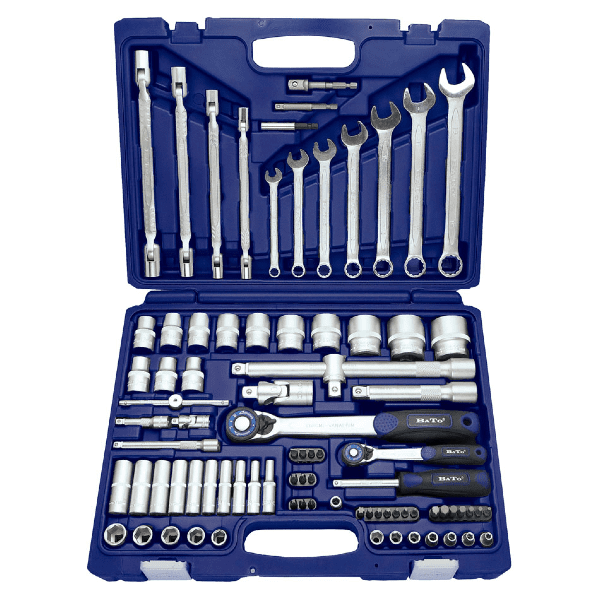 Værktøjssæt 72 dele i alu kuffer og EVA skum. Spidstang, Kombi tang, Kniv 18mm, Kniveblade 18mm, Båndmål 3m, Skruetrækker 5x75 6x100 Ph1x75 Ph2x100, Stiftenøglesæt 1,5-2-2,5-3-4-5-6mm, Ringaffelnøgler 6-8-10-12-13-14-17mm, Bitsskruetrækker, Bits kærv 4-5-5,5-6,5mm Ph 1-2-3 Pz 1-2-3 6 kt. 3-4-5-6mm Torx 10-20-25-30 Rob S1 S2 S3, 3/8" Toppe 8-10-11-12-13-14-15-16-17-19mm, 3/8" Skraldnøgle, Forlænger 3/8"x75 3/8" x 150mm, 3/8" Kardanled, 300G Hammer, 3/8" Tændrørstop 16mm. A: 420 mm B: 220 mm C: 130 mm Vægt 5,000 kg