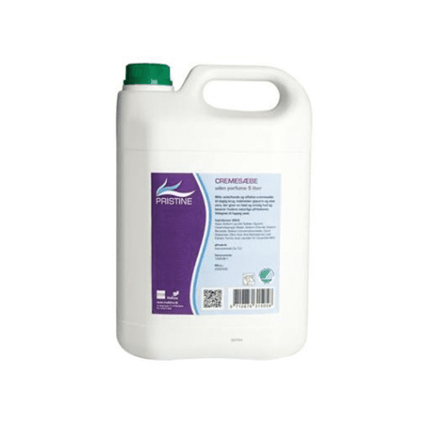 Pristine cremesæbe uden parfume er den ideelle løsning for dem, der søger en mild, effektiv og langvarig håndhygiejne. Denne svanemærkede sæbe kommer i en praktisk 5 liters dunk, der sikrer, at du har nok til daglig brug. Den er skånsom mod sensitiv hud, hvilket gør den perfekt til både privat og professionel brug, hvor hygiejne og hudvenlighed er vigtige. Uden parfume og med en mild formel kan den bruges af hele familien eller på arbejdspladsen, uden at irritere huden.