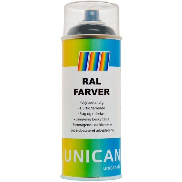 Unican RAL-farver er yderst velegnet til at give en flot og beskyttende finish på alle former for maskiner, konstruktioner og andet udstyr. Unican RAL-farver kan også bruges som opmærknings -spray på værktøj eller andet, som ønskes markeret. Unican RAL-farver har en hurtig tørretid og en fremragende bestandighed overfor de til tider meget krævende danske vejrforhold. Vejrbestandig hurtig tørrende Fremragende dækkeevne Slag og ridsefast Langvarig beskyttelse Vi lagerfører min. 100 forskellige ralfarver Karton af 6 stk.