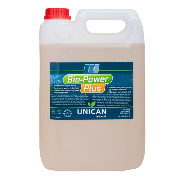 Bio-Power Plus er en rensevæske med høj opløsningseffekt. Den vandklare mikro-emulsionsaffedter er et kraftigt rengøringsmiddel til anvendelse i rensebar eller til manuel rengøring. Produktet løsner selv stærke forureninger og fastgroet snavs såsom fedt, voks, olie og bitumen fra de fleste metal og plast overflader. Bio-Power Plus fjerner let gummistriber/spor på linoleumsgulve samt sorte striber på campingvogne der har stået ude vinteren over. Produktet kan fjerne sod og harpiks på fastbrændsels fyr, dyser og savklinger. Bio-power er også særligt velegnet mod friturefedt og andre stege belægninger. Produktet renser desuden yderst effektivt for slagger i skraldevogne, containere og affaldsspande. Bio nedbrydende Skumsvag og VOC-fri Fjerner animalsk fedt Effektiv fælge- og insektrens Alternativ til opløsningsmidler og alkaliske affedtere Til manuel og mekanisk brug Karton af 3 stk. Fås også som 500 ml Spray og 20L Dunk.