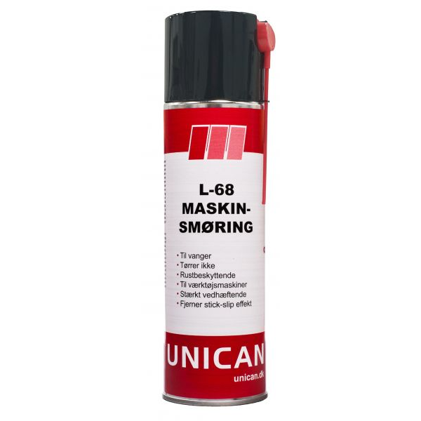 Unican’s formulering af L-68 Maskinsmøring er udviklet til at eliminere almindelige problemer på vanger som stick slip, vibrationer og køleskæreolie- forurening. L-68 forbedrer derfor markant nøjagtigheden, produktionshastigheden og værktøjets levetid. L-68 Maskinsmøring er derfor specielt til beskyttelse og smøring af værktøjsmaskiner. Til vanger Tørrer ikke Rustbeskyttende Til værktøjsmaskiner Stærkt vedhæftende Fjerner stick-slip effekt Karton af 6 stk.